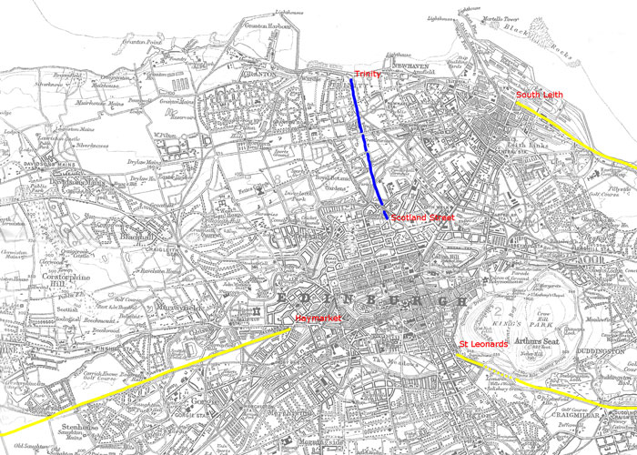 In 1868 the NBR opened a new line from Waverley Station through Abbeyhill to Bonnington, so that the steep tunnel could be closed and locomotives used for the whole journey. Trains then ran to and from the bay (terminal) platforms at the east end of Waverley.