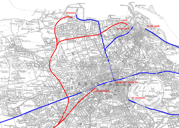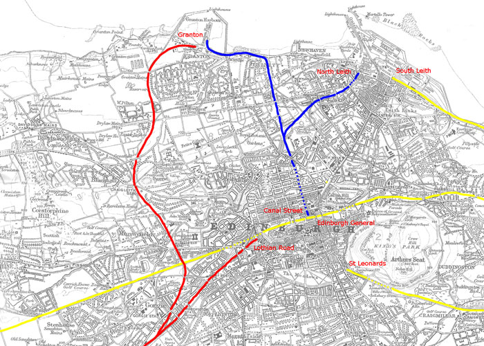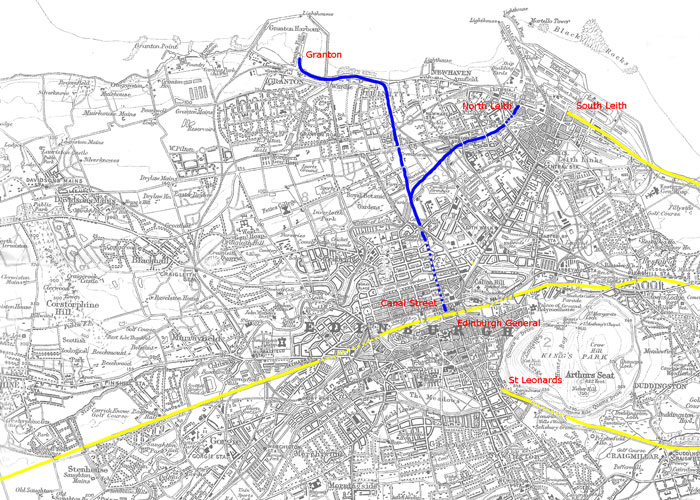 Passenger services from Edinburgh to Leith on this route started in 1879. In the Granton area there were stations at Newhaven Road (near Trinity Academy) and Granton Road