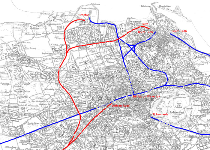 The Edinburgh Leith & Granton Railway amalgamated with the Edinburgh Perth & Dundee on 1 April 1849. The new company's services extended from Edinburgh to Tayport (for the ferry to Broughty Ferry and connections to Dundee and Aberdeen).